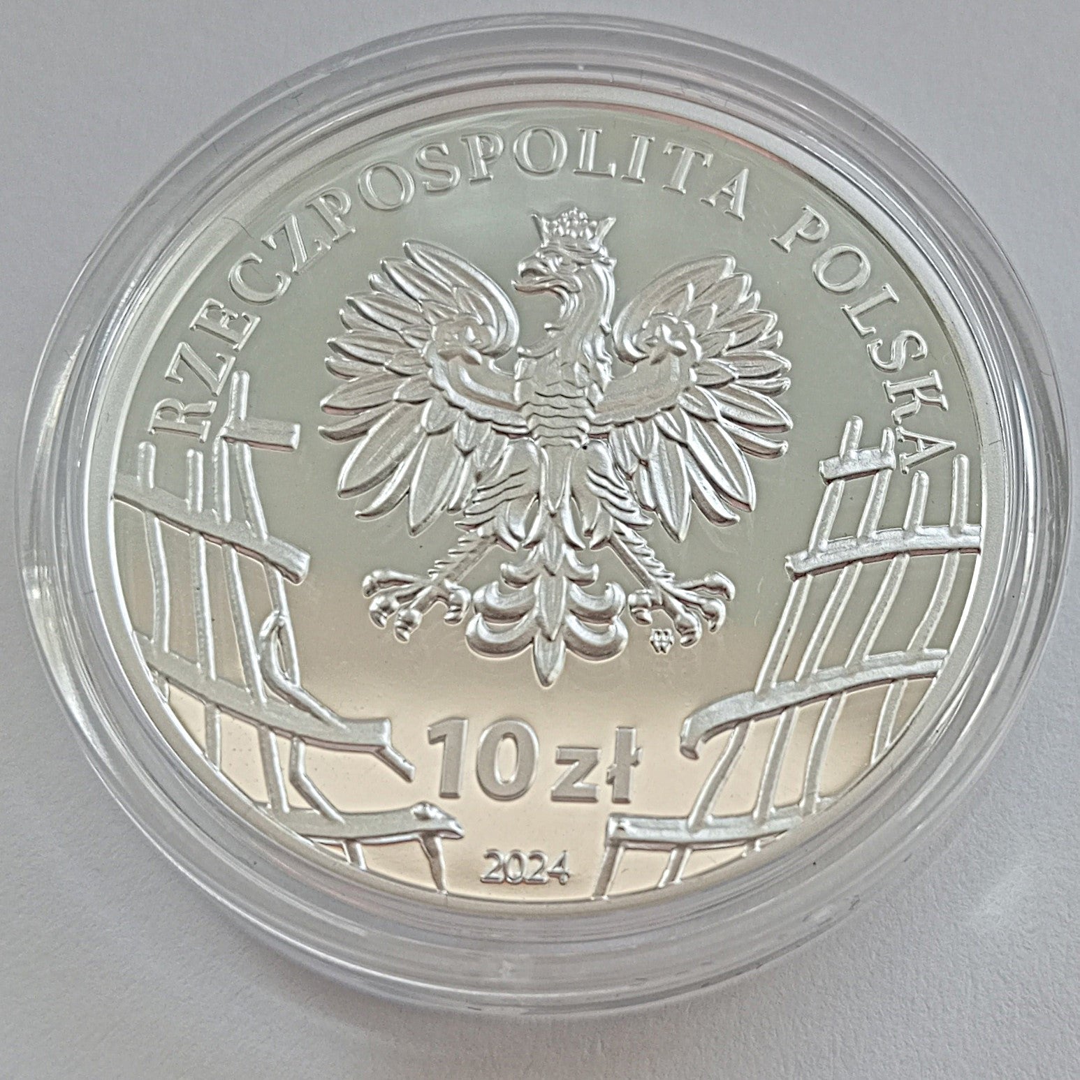 Awers: Orzeł w koronie, godło Rzeczypospolitej Polskiej, znak menniczy m/w, wartość na dole 10 zŁ (Złotych) oraz data 2024. Nazwa kraju na górze RZECZPOLITA POLSKA