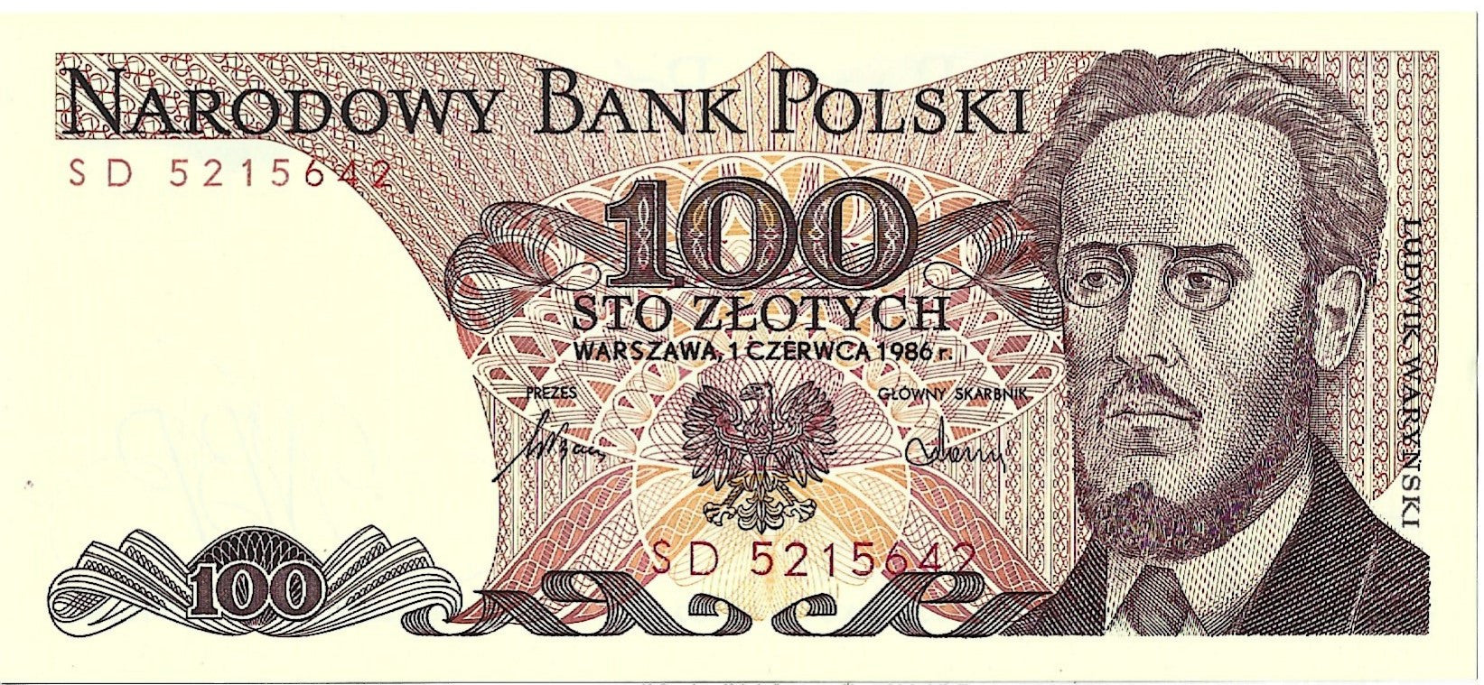 100 Złotych 1986 - UNC