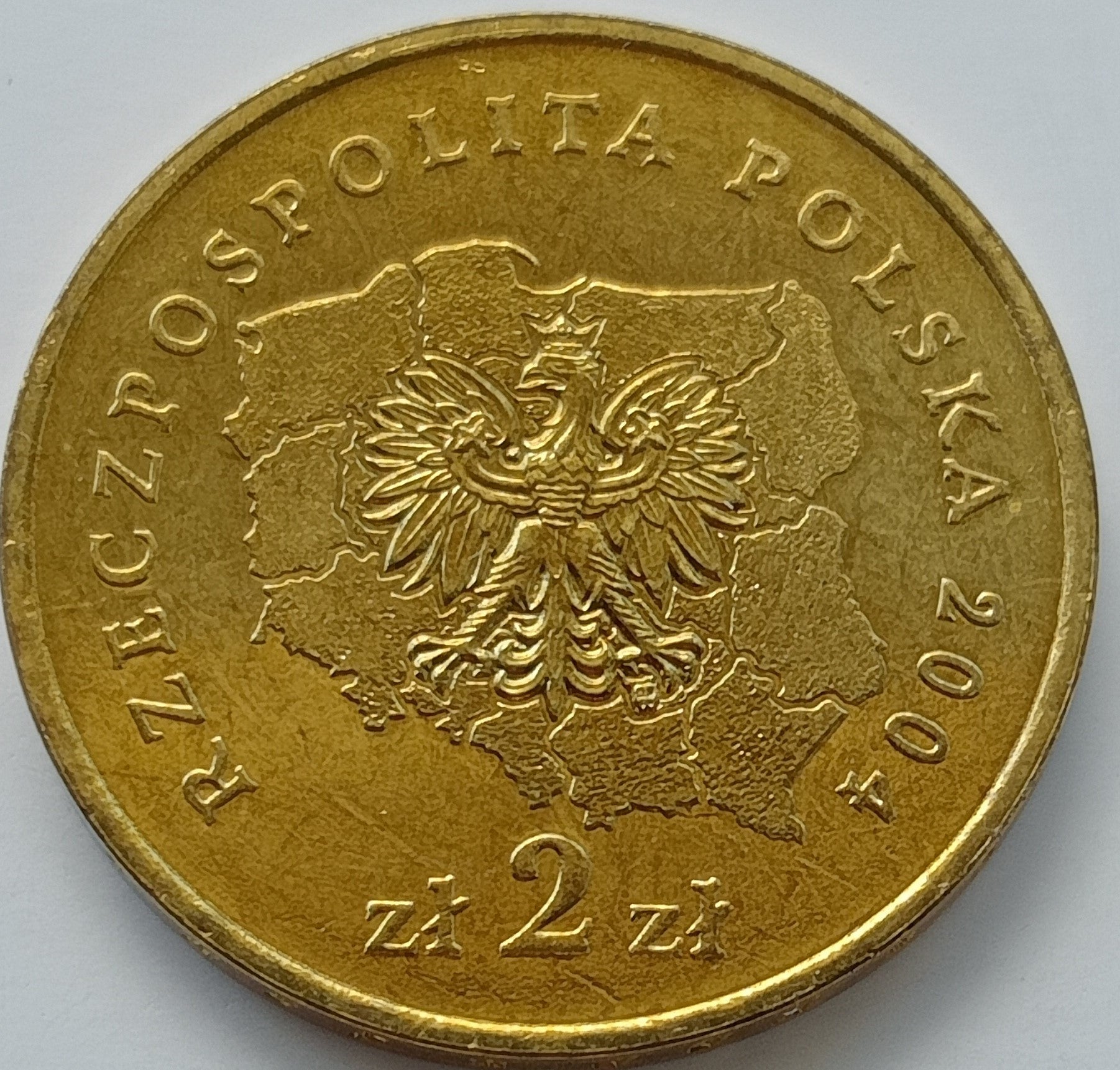 Motywem rewersu jest dwudzielny herb województwa podlaskiego. W górnej części orzeł, w dolnej rycerz na koniu. U góry napis "WOJEWÓDZTWO", na dole "PODLASKIE". Na awersie nazwa emitenta i rok emisji RZECZPOSPOLITA POLSKA 2004 półkoliście przy otoku. Na dole nominał "zł 2 zł". Centralnie godło Polski orzeł biały ze znakiem menniczym stylizowanym MW pod pazurami na tle mapy z województwami.