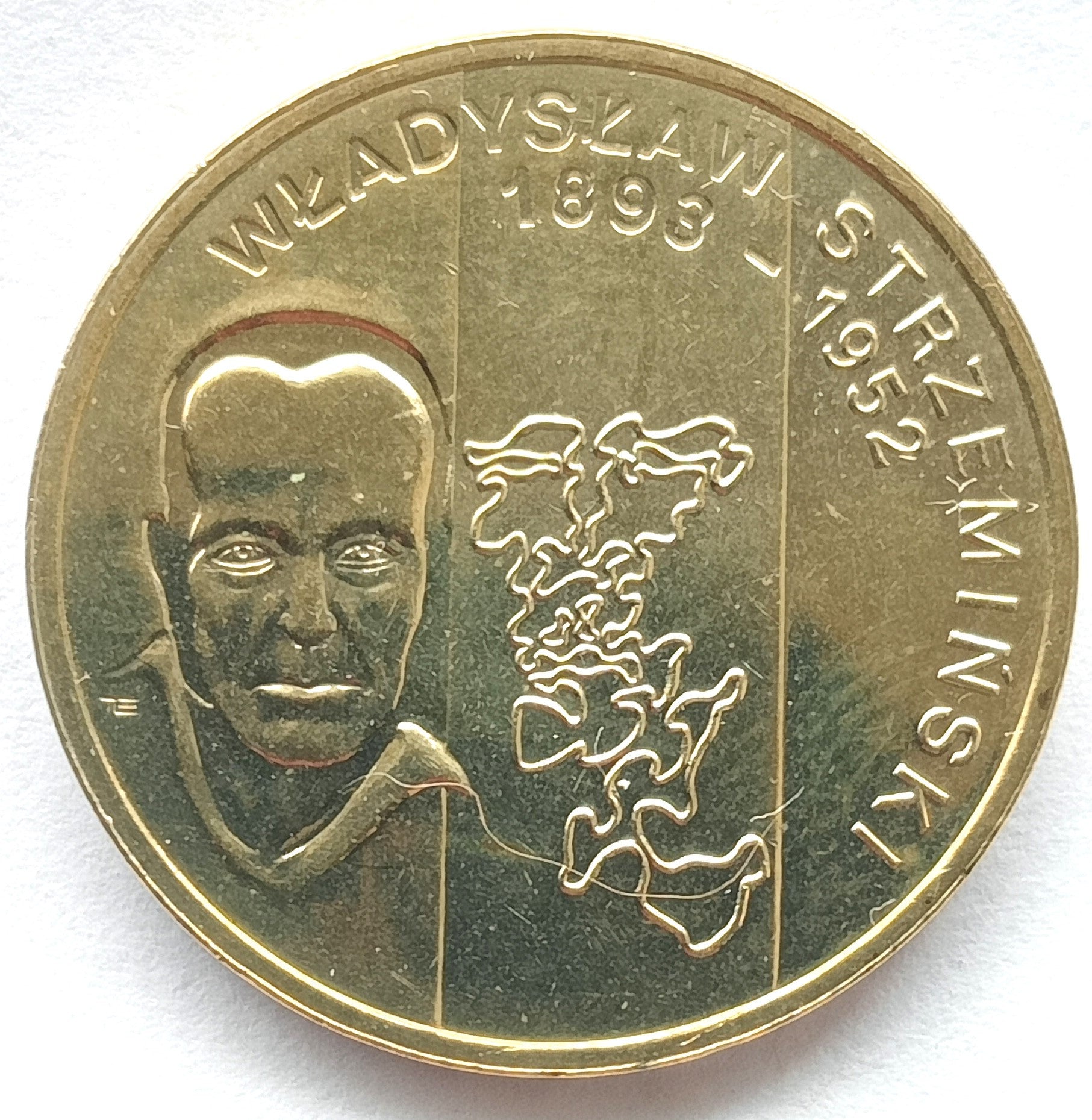 W lewej części rewersu wizerunek Władysława Strzemińskiego. Z prawej jego imię i nazwisko, pod nimi lata życia 1893-1952. Centralnie jeden z jego rysunków z cyklu "Twarze". Na awersie zawarto nazwę państwa emitującego, jego godło, rok emisji i nominał 2 zł. Wszystko wplecione w kompozycję z paletą malarską i pędzlami.