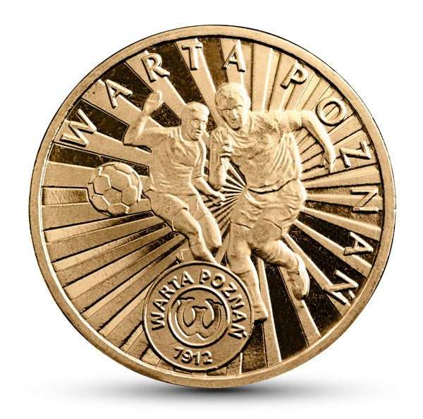 Na rewersie 2 piłkarzy wraz z piłką. U dołu logo klubu Warta Poznań. W górnej części półkolisty napis "WARTA POZNAŃ". Na awersie napis "RZECZPOSPOLITA POLSKA", orzeł biały, który pod pazurami ma stylizowany symbol mennicy warszawskiej MW i dzieli rok emisji 2013 na 2 części. Pod nim nominał "zł 2 zł".