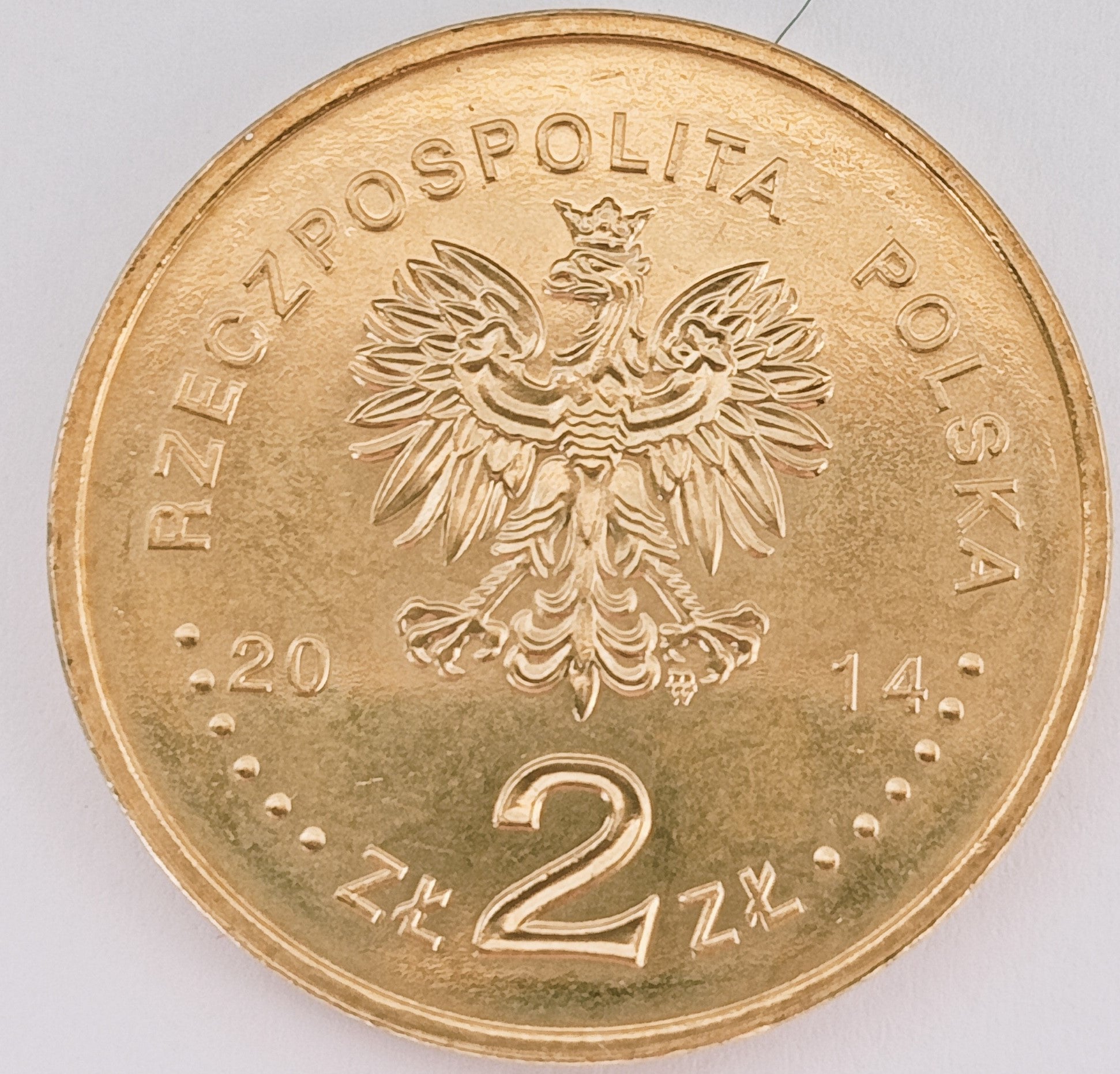 Na rewersie wizerunek papieża Jana Pawła II. Od lewej w górę napis KANONIZACJA JANA PAWŁA II, a po prawej data 27 IV 2014. Na awersie orzeł biały, znak mennicy warszawskiej MW, nominał "zł 2 zł", rok emisji 2014 i nazwa państwa-emitenta RZECZPOSPOLITA POLSKA.
