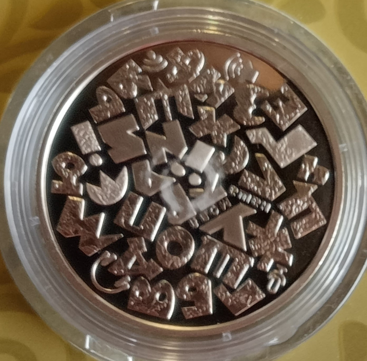 Rewers: Stylizowana kompozycja z liter alfabetu ukraińskiego, które fonetycznie i graficznie odróżniają język ukraiński wśród kultur posługujących się cyrylicą' w połączeniu ze słowami НАША МОВА (nasz język).