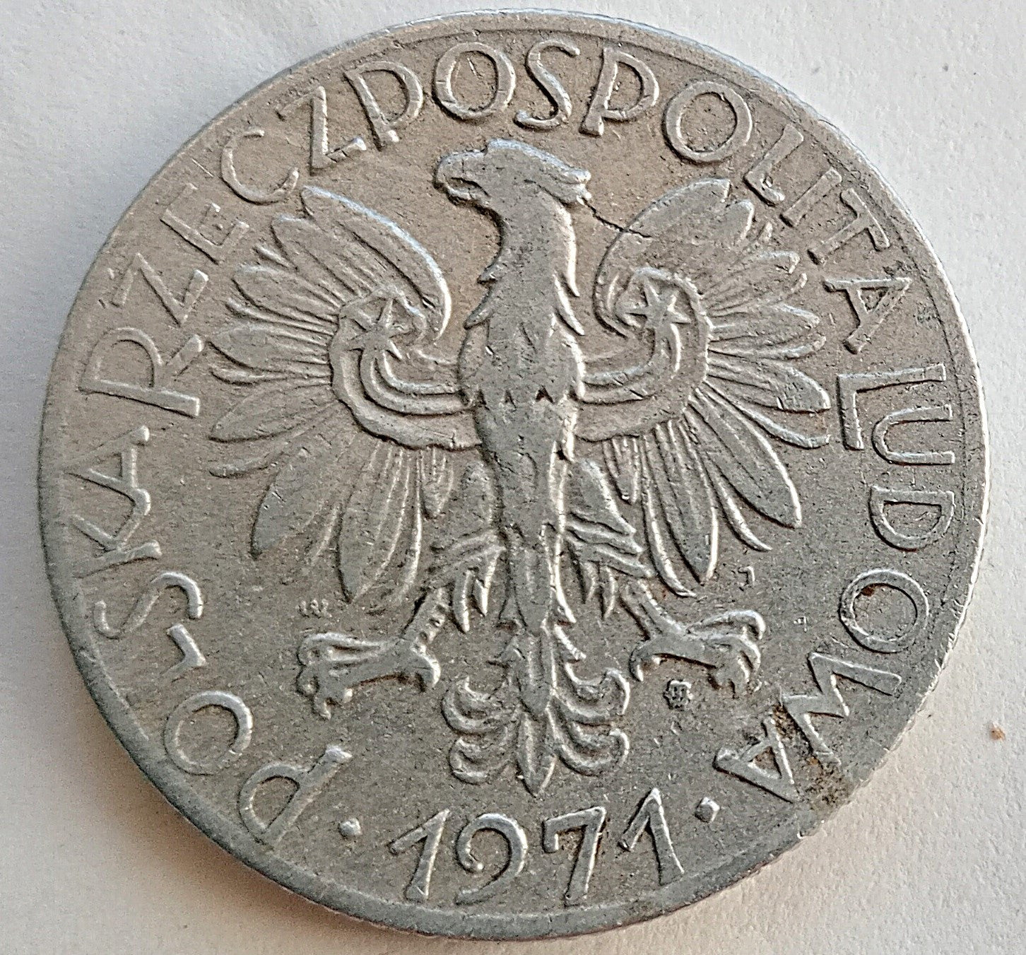 znak mennicy: (poniżej prawego pazura) M-W (Mennica Warszawska, 1965)
