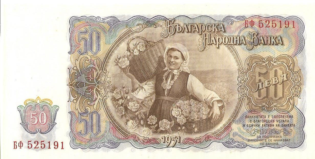 Rewers: pośrodku zdjęcie kobiety zbierającej róże