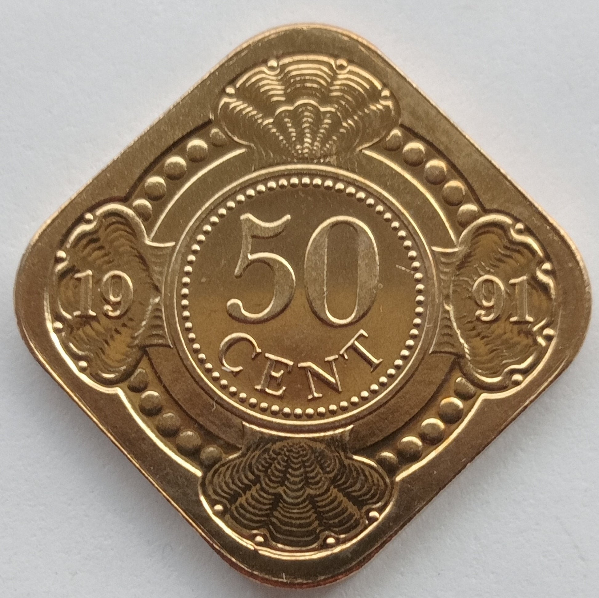 Awers: wartość nominalna 50ᶜ (Cent) wewnątrz przerywanego okręgu