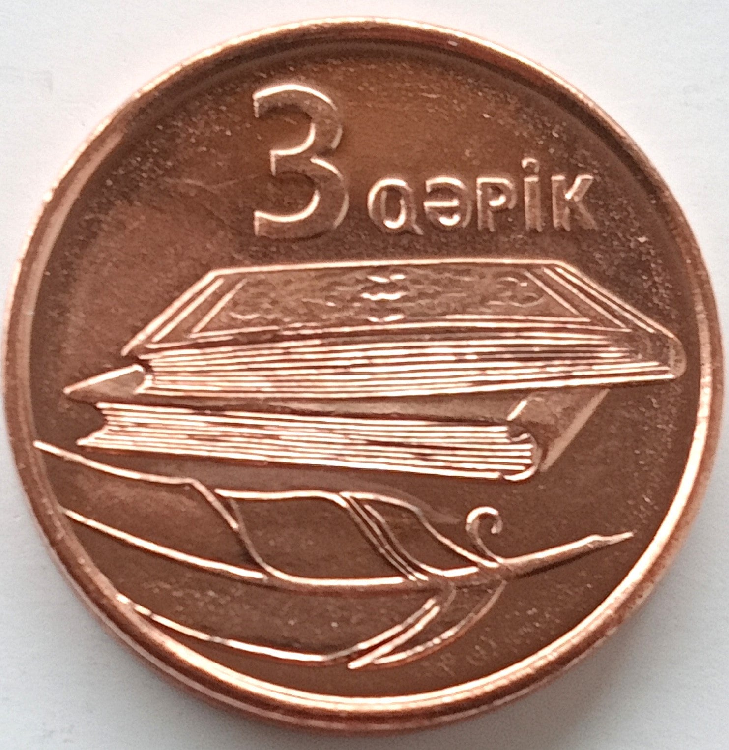 Rewers: Mapa Azerbejdżanu powyżej (wartość nominalna) 3 QƏPiK