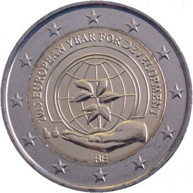 Europejski Rok na Rzecz Rozwoju był programem realizowanym w 2015 roku. Jego głównym celem było wspieranie krajów z mniej rozwiniętych regionów. Z powodu tego wydarzenia została wyemitowana belgijska moneta o nominale 2 euro. Na jej awersie widnieje dłoń podtrzymująca roślinę, w tle siatka współrzędnych. Od lewej w górę znak mennicy, mincmistrza, rok emisji 2015, napisy „2015 EUROPEAN YEAR FOR DEVELOPMENT” („2015 EUROPEJSKI ROK NA RZECZ ROZWOJU”). Na dole kod Belgii "BE".