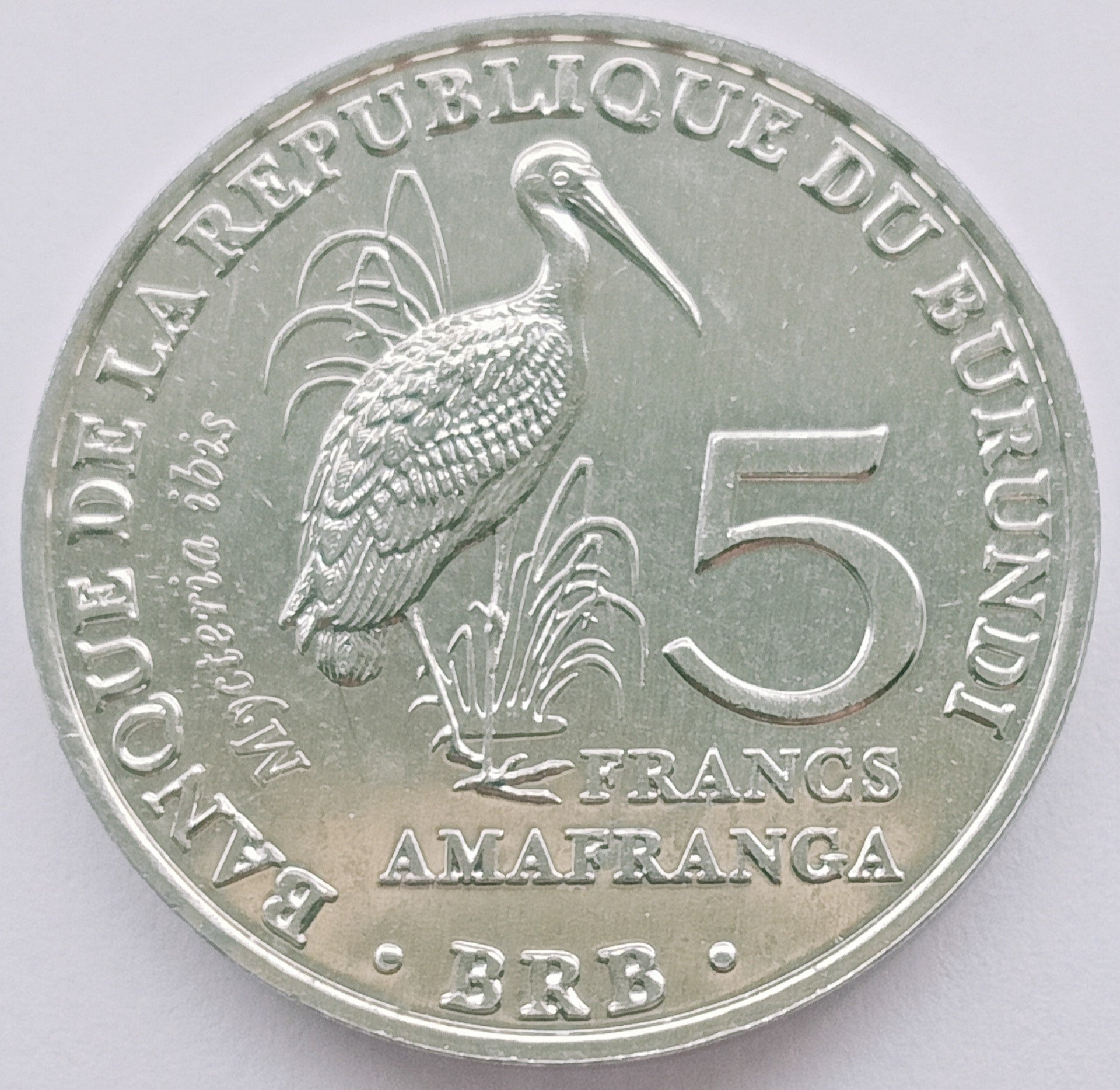 Burundi 5 Franków 2014 Bocian żółtodzioby - Mycteria ibis - Tantale ibis