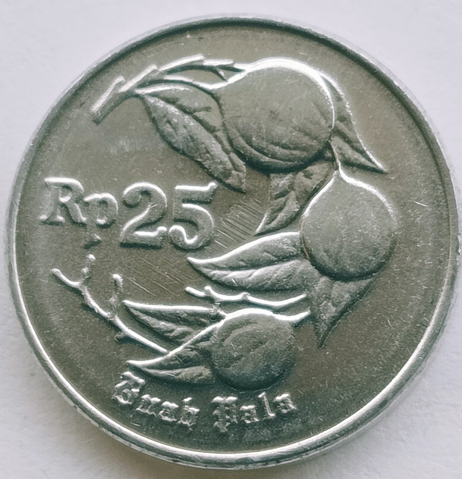 Awers: (roślina) roślina gałki muszkatołowej w wokół wartości nominalnej Rp 25