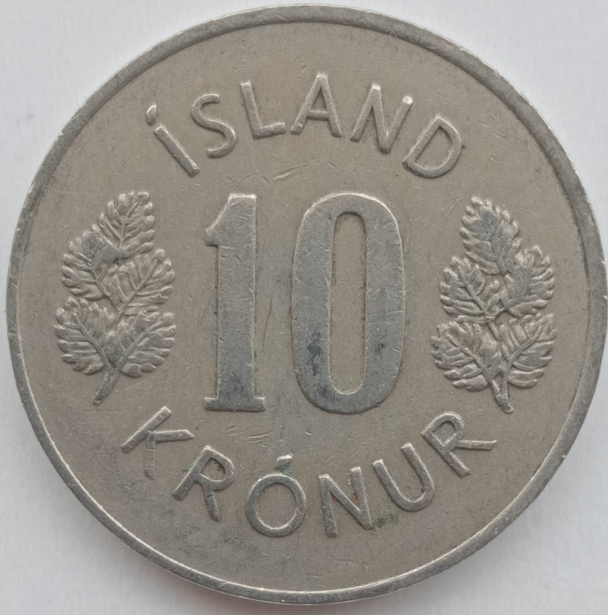 Legenda: (na górze, nazwa państwa) ÍSLAND (na dole, waluta) KRÓNUR
