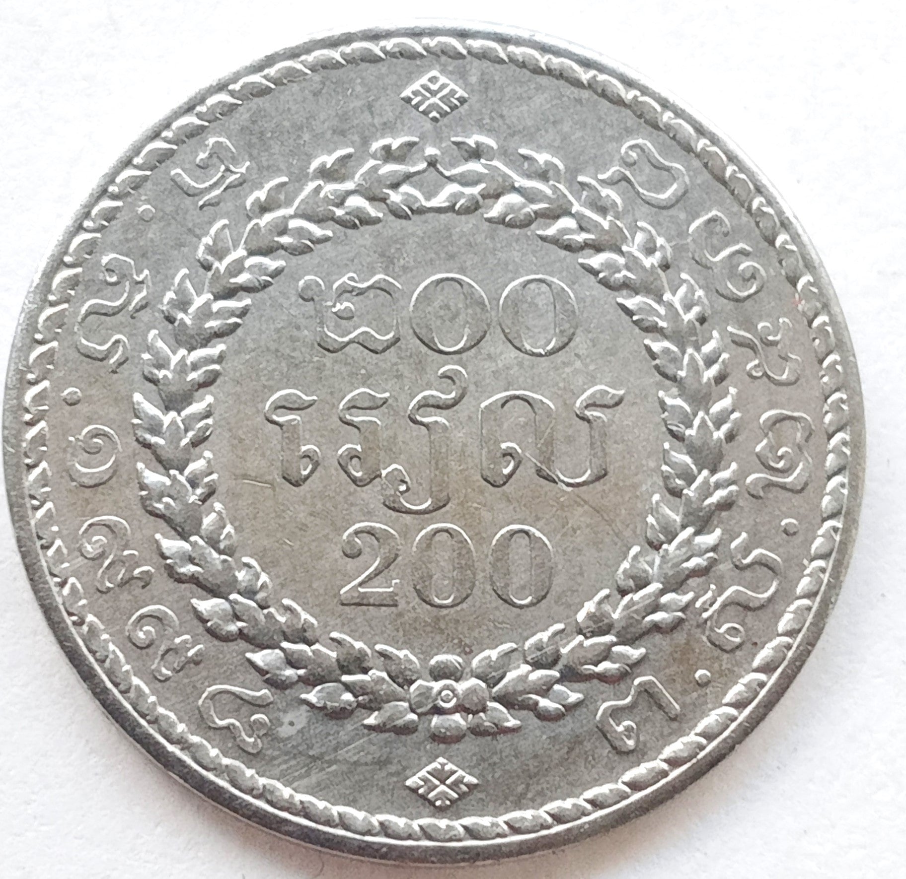 Awers: Wartość 200 Riel wewnątrz okręgu przypominającego wieniec