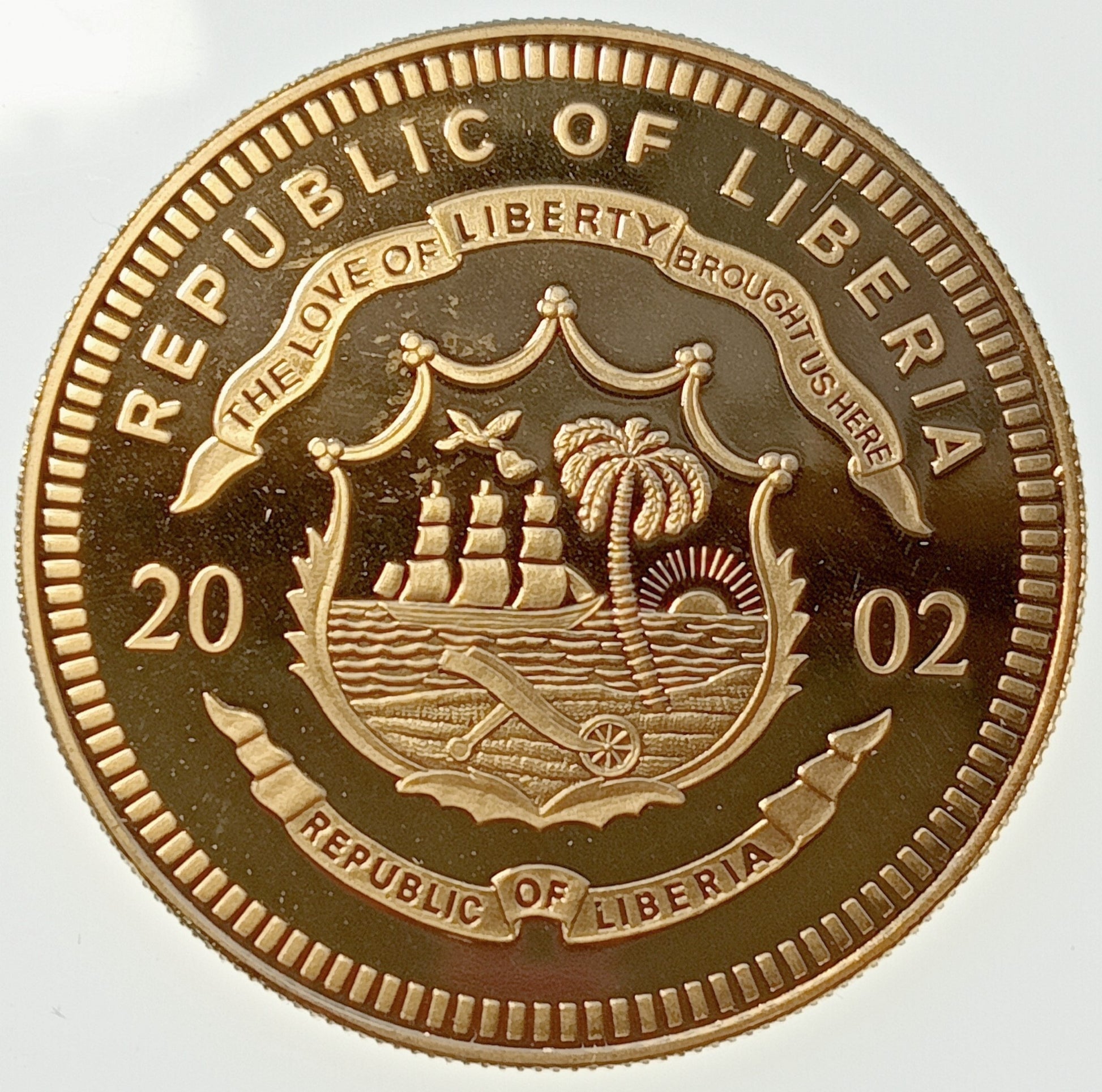 Awers: herb, motto we wstążkach „THE LOVE OF LIBERTY BROUGHT US HERE” oraz „REPUBLIC OF LIBERIA” rok wydania rozdzielone herbem „20 02”, kraj; „REPUBLIKA LIBERII”