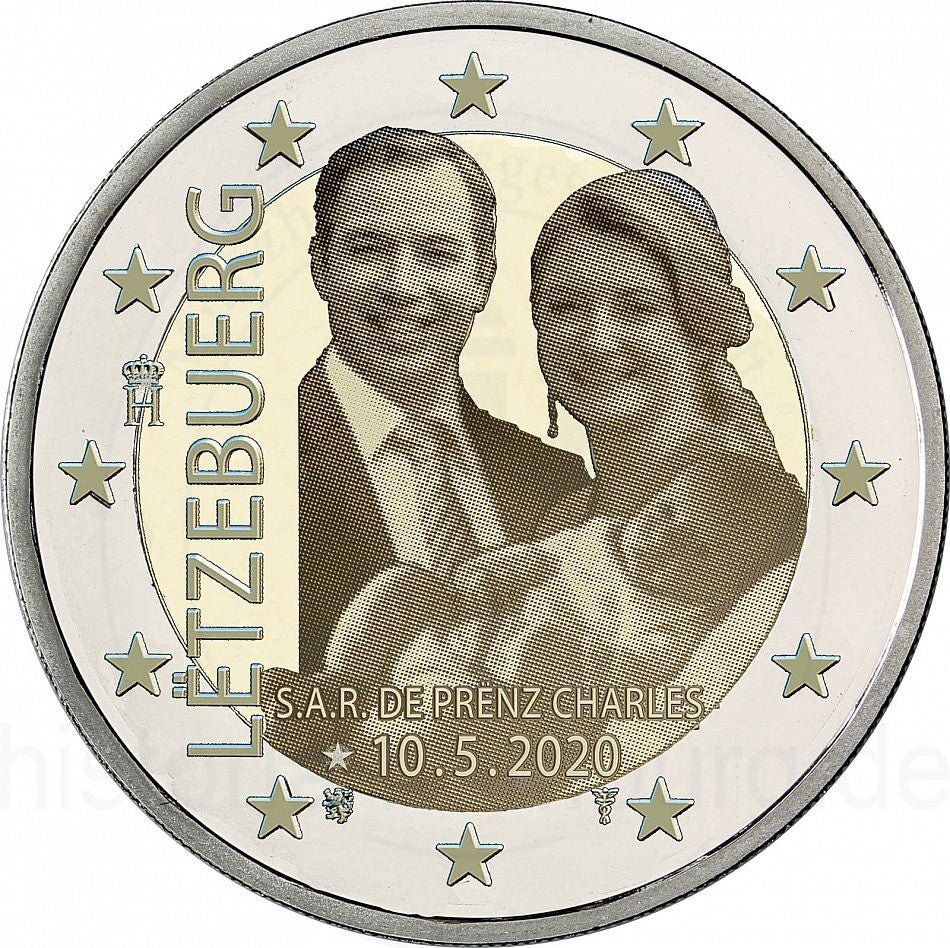 W 2020 roku następca luksemburskiego tronu Wilhelm wraz z małżonką Stefanią przywitali na świecie swojego pierworodnego syna. Temu wydarzeniu poświecono luksemburskie okolicznościowe monety euro w tym samym roku. Na awersie przedstawiono uśmiechniętych monarchów wraz z dzieckiem. Ponadto nazwa państwa emitującego „LETZEBUERG” ("LUKSEMBURG") i rok emisji 2020. Na dole tematyczny napis „S.A.R. de Prënz Charles” ("Jego Królewska Wysokość książę Karol").
