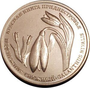 Rewers: Galanthus nivalis, przebiśnieg lub przebiśnieg pospolity; КРАСНАЯ КНИГА ПРИДНЕСТРОВЬЯ (Czerwona Księga Naddniestrza) ПОДСНЕЖНИК СНЕЖНЫЙ – GALANTHUS NIVALIS (Przebiśnieg - Galanthus nivalis)