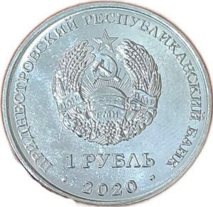 Awers: Godło Naddniestrzańskiej Republiki Mołdawskiej, wartość „1 РУБЛЬ” (rubel) i data; „ПРИДНЕСТРОВСКИЙ РЕСПУБЛИКАНСКИЙ БАНК 2020 ” (Naddniestrzański Bank Republikański)