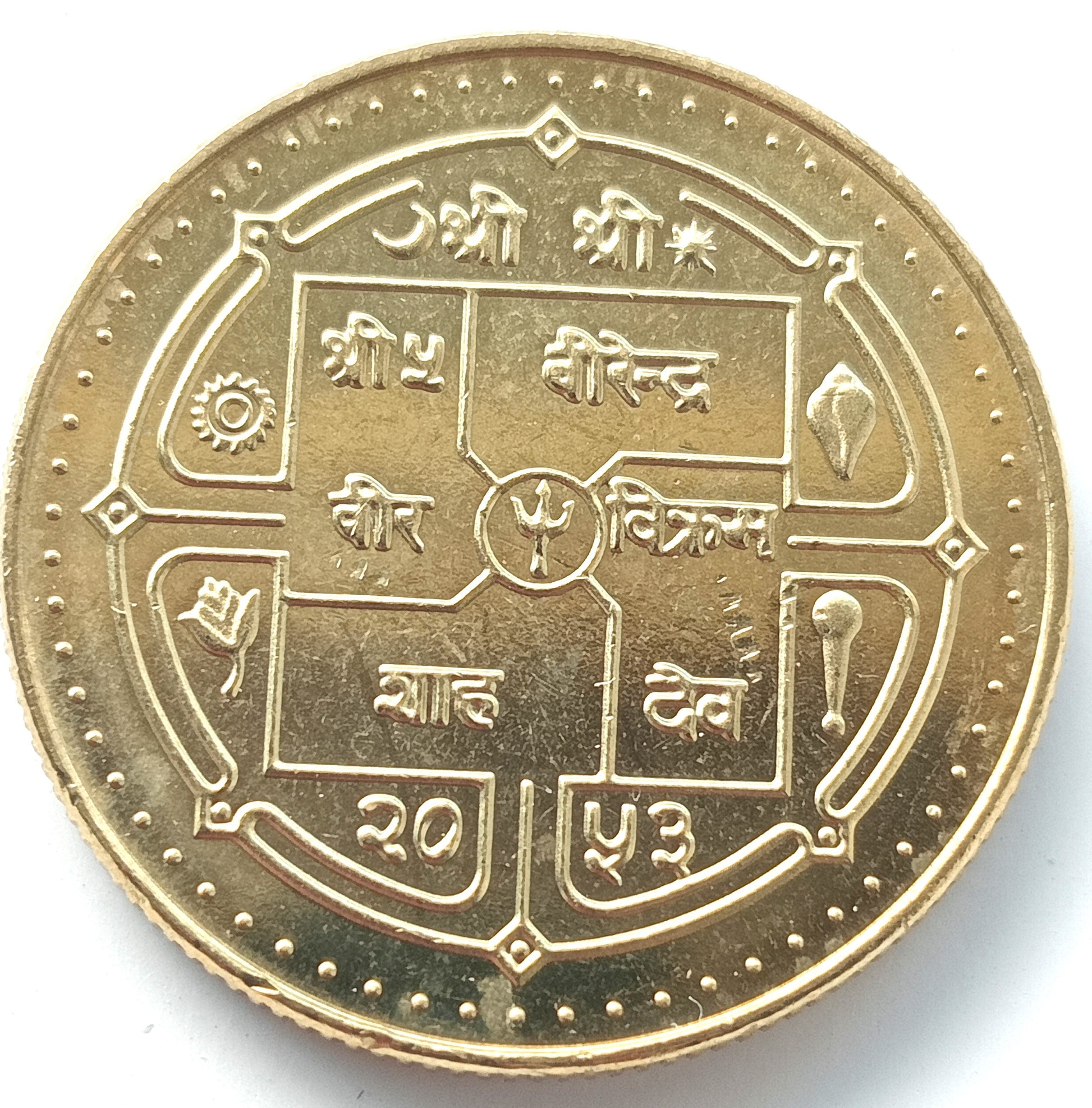 Nepal 5 Rupii 1996 (małe - ząbkowane - niemagnetyczne)