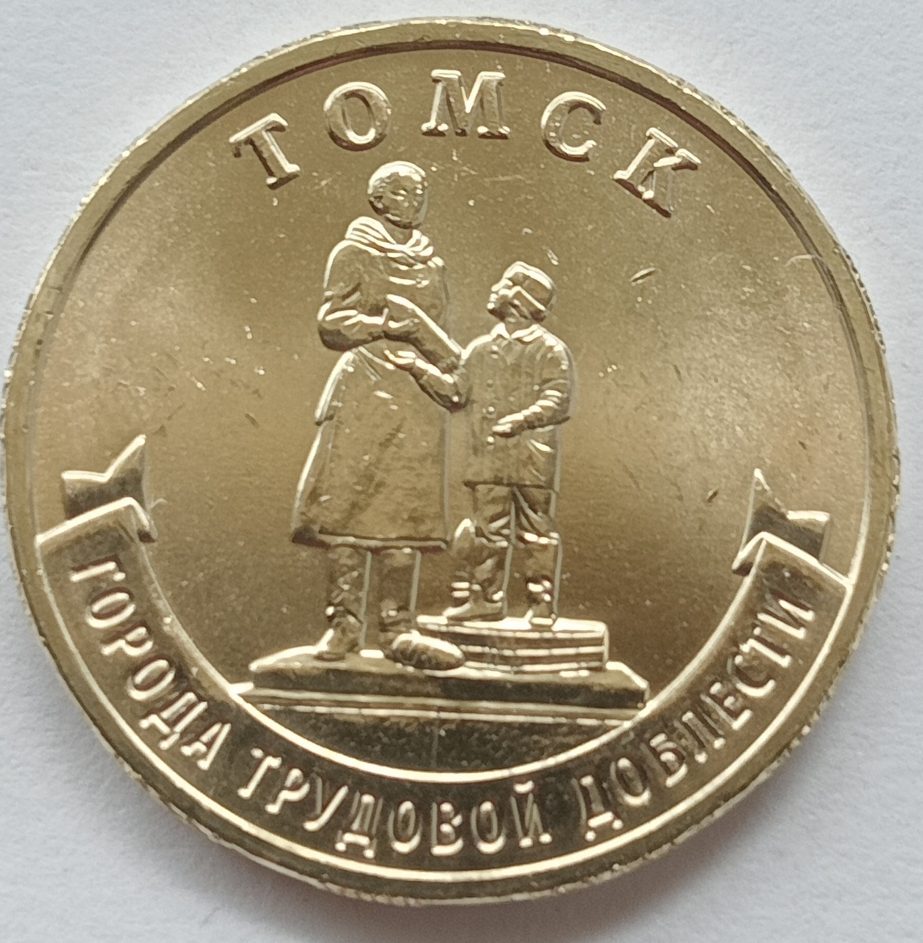 Rewers: Pomnik kobiet i nastolatków, którzy wypracowali zwycięstwo na tyłach. Miasto u góry ТОМСК (Tomsk), nazwa serii na wstędze u dołu ГОРОДА ТРУДОВОЙ ДОБЛЕСТИ (Miasta waleczności pracy).