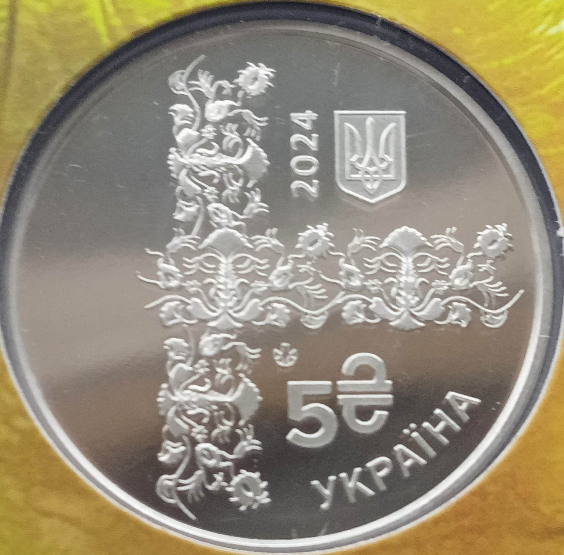 Awers: Na lustrzanym tle, tradycyjny ornament krymskotatarski, podkreśla nierozerwalny związek Krymu z Ukrainą; logo Mennicy Narodowego Banku Ukrainy (lilia), data w pionie u góry po prawej 2024 i mały herb państwowy Ukrainy, nominał u dołu po prawej 5 ₴ (5 hrywien). Nazwa kraju u dołu po prawej УКРАЇНА (Ukraina).